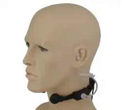 A throat microphone, also called a laryngophone, is a type of contact microphone that absorbs vibrations directly from the wearer's throat by way of single or dual sensors worn against the neck. The sensors, called transducers, can pick up speech even in extremely noisy or windy environments, such as on a motorcycle or in a nightclub. Other types of microphones do not function well under these conditions because of high levels of background noise. Advanced laryngophones are able to pick up whispers, and therefore perform well in environments where communicating with others at a distance in silence is required, such as during covert military or law enforcement operations. Throat microphones are also very useful when helmets or respiratory protection is required. Many full-face SCBA, CABA, SAR Respirator, Elastomeric Respirator, N95 Respirator PAPR, or re-breather masks do not have a provision for a microphone inside the mask. The throat microphone can be used safely, as it is positioned outside the mask's face seal and as such does not compromise the respiratory protection provided by the mask, nor does it violate mask approvals and certification.