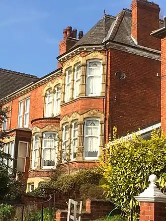 - 49 Yarborough Road, Lincoln. 1896. Brick terrace house with extensive use of decorative artificial stonework.[7]