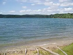 Thumb Lake, also known as Lake Louise by the "Lake Louise Camp" community, is a kettle lake located in Hudson Township, Charlevoix County, Michigan, United States. The epithet Thumb Lake derives from the lake's bathymetry. An islet protrudes from the lake's west basin. The total surface area of the lake is 484 acres (2.0 km2), with maximum depths of 152 feet (46 m).
