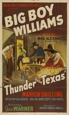 Thunder Over Texas is a 1934 American populist contemporary Western film directed by Edgar G. Ulmer under the alias Joen Warner (the name of Ulmer's previous wife)[1] and produced by two nephews of Universal Pictures head Carl Laemmle, Arthur and Max Alexander's Poverty Row Beacon Productions. The film's story was written by Shirley Ulmer under the name of Sherle Castle. Shirley was then married to Max Alexander but would soon leave Max to marry Edgar with the result that Lammele blacklisted Ulmer from Hollywood.[2] The film was shot in Kernville, California.
