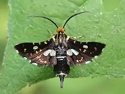 Thyris usitata is a moth of the family Thyrididae. It is found in Russia and Japan.
