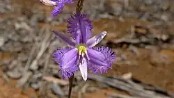 Thysanotus baueri commonly known as mallee fringe-lily,[2] is a flowering plant in the family Asparagaceae and grows in Western Australia, South Australia, New South Wales and Victoria. It is an upright perennial forb with purple fringed flowers that are borne on a slender stem.
