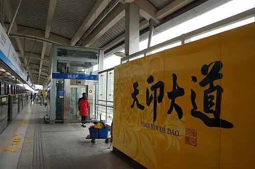 Tianyindadao station (Chinese: 天印大道站; pinyin: Tiānyìndàdào Zhàn; lit. 'Tianyin Avenue station'), is a station of Line 1 of the Nanjing Metro. It began operations on 28 May 2010,[1][2] as part of the southern extension of line 1 from Andemen to CPU.