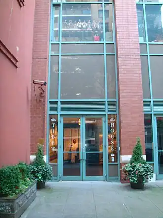 In 1959, soon after escaping the Chinese invasion of Tibet to India, the 14th Dalai Lama while addressing a group of fellow refugees stated "The great job ahead of us now is to preserve our religion and culture."[4] In 1987, "a group of Westerners sympathetic to the Tibetan cause," Columbia University professor and THUS President Robert Thurman, the first western Buddhist monk, actor and Chairman of the International Campaign for Tibet, Richard Gere, and classical composer and THUS Vice President Philip Glass, founded the organization to preserve, protect and present the cultural and religious heritage of Tibet, and give a contemporary understanding of the contributions this endangered culture offers, in the Flatiron district of New York City.[5][6][7][8][9][10][11][12][13] Frances Thargay, while working at the Office of Tibet in New York as Executive Assistant to the Dalai Lama's Representative to the US, Tenzin Tethong, wrote the first draft of Richard Gere's proposal for Tibet House.[14] Managing Director Nena Thurman initiated the annual benefit concert with Glass, and the annual benefit auction. She is also the Executive Chairwoman of the THUS project, Menla Retreat.[15][16]