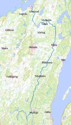 Tidan is a river in Sweden. It is one of few Swedish rivers that flow north. The river can be canoed from Bottnaryd (57°46′21″N 13°50′33″E / +57.7724°N +13.8426°E) to Mariestad (58°41′32″N 13°49′30″E / +58.6921°N +13.8249°E), a trip that takes 7–10 days.