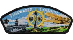 The Tidewater Council was founded in 1911 as the Norfolk Council, changing its name in 1935 to its current name.[2] In 1916, the Portsmouth Council (#597) was founded, changing its name to the Portsmouth Area Council in 1924. Portsmouth merged with the Norfolk Council in 1930.