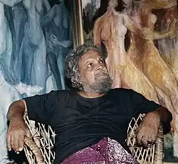 Cavaliere (OMRI) Tilake Abeysinghe (Sinhala: කැවාලියර් තිලක අබේසිංහ; Tamil: காவலியர் திலகே அபேசிங்க; 28 March 1929 – 24 September 2022),[1] better known as Tilake, was an internationally reputed Sri Lankan painter and sculptor. Using traditional media such as oil on canvas and water colours, and sculpting in bronze, cement, clay and plaster-of-paris, Tilake fused oriental ethos with western sensuality in his art pieces.[2][3][4][5][6][7] Tilake created abstract, semi-abstract and feminine form inspired paintings and sculptures.[8]