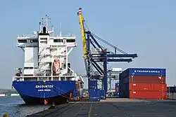 ![]() Container ship Carpathia unloading at Northfleet Hope terminal | |