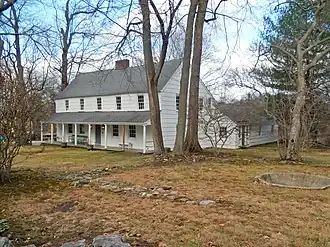 Ezekiel Halsted, a wealthy landowner originally from Long Island, purchased the property from Timothy Knapp's sons in 1746. He expanded the house, adding a second floor using "post-and-beam" construction with a sloping roof in the back containing a dining room and kitchen, which gave the house the distinctive saltbox architecture.[2] Beams are hand-hewn, and some retain their original bark.[2] The house has cellar walls reinforced with lime made from crushed oyster shells, 12-inch wooden nails holding floorboards together and a massive center chimney reinforced with mud mortar.[4] The Halsted family lived in the house for the next 157 years.[3]
