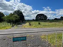 The Thames Branch Te Aroha to Paeroa section opened through Tirohia on 20 December 1895.[14] A flag station[15] opened for passengers on 1 November 1899.[16] In the months prior to opening the names Te Rae-o-te Papa and Okahukura had also been used. Initially there was only an earth platform, but, in November 1902, a shelter shed was added for £17 12s 7d. In 1904 and 1913 there were requests to move the station north to Cadman Road. As the station was used by quarry workers it wasn't moved.[10] In 1915 a train was derailed by cattle at Cadman Road, but no passengers were injured.[17] From November 1926 Tirohia handled general goods traffic, with a 32-wagon siding, loading bank, privy and urinal. In July 1930 a 20 ft (6.1 m) x 12 ft (3.7 m) goods shed was moved from Pukekohe. In May 1975 the public siding was removed and in December 1977 the goods shed was sold.[10]