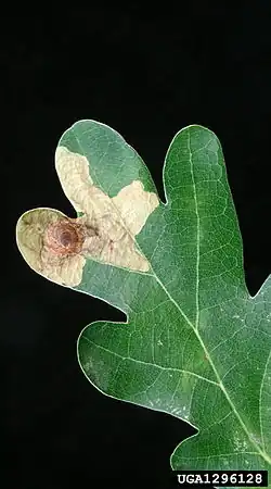 The larvae feed on Castanea sativa and Quercus species, including Quercus cerris, Quercus faginea, Quercus macrolepis, Quercus pedunculiflora, Quercus petraea, Quercus pubescens and Quercus robur x turneri. They mine the leaves of their host plant.