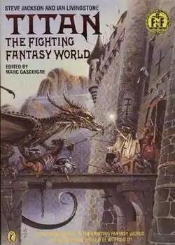 Titan: The Fighting Fantasy World is a book in the Fighting Fantasy series of children's role-playing gamebooks, first published by Puffin Books in 1986. Although credited to Steve Jackson and Ian Livingstone, it was actually written by Marc Gascoigne (credited as editor),[1] although mostly based on locations, characters and events already described in other books in the series (including Jackson's and Livingstone's). It is written in the manner of an encyclopedia about the fantasy world of Titan, in which the majority of Fighting Fantasy gamebooks are set.