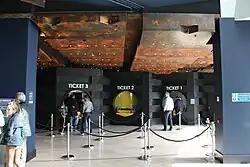 The aftermath of the sinking is documented in the seventh gallery, which is dominated by a full-size replica of one of the lifeboats used to evacuate passengers from the ship. The American and British inquiries into the disaster are portrayed on either side of the lifeboat through videos and information panels. Visitors can use interactive screens to search the passenger and crew lists to find out if one of their relatives was aboard the ship. The gallery also presents information on the subsequent histories of Harland and Wolff and Titanic's sister ships.[24]