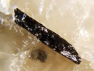![]() Black sharp crystals of titanowodginite associated to white beryl from the type locality for the first mineral: Tanco Mine, Bernic Lake, Lac-du-Bonnet, Manitoba, Canada. | |