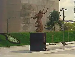 Between 2008 and 2012, the government of Azerbaijan donated two bronze statues to the government of Mexico City to place them in the city. One to honor the Khojaly massacre and the other a statue in honor of Heydar Aliyev, the former president of the country. The former measures 3.60 m (11.81 ft)[9] and features a woman with her arms up mourning the 1992 Khojaly massacre, as described by The Moscow Times.[10] The installed plaque initially called the Khojaly massacre a "genocide",[11] but this was later changed to "massacre".[12] The statue of Aliyev was placed in Chapultepec Park, in an area later denominated as Parque de la Amistad México–Azerbayán. The embassy also donated around 65 million Mexican pesos to improve the areas.[13] According to Ilgar Mukhtarov, Azerbaijan Ambassador to Mexico, the embassy never gave money directly to the city but paid private construction companies to perform the works.[14]