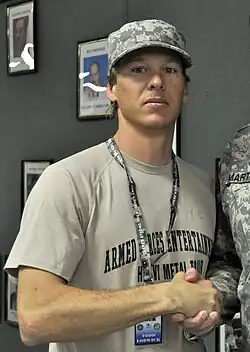 Todd Lodwick (born November 21, 1976) is an American Nordic combined skier. He competed at the 1994, 1998, 2002, 2006, 2010 and 2014 Olympics and won a team silver medal in 2010. His best individual result was fourth place in 2010, when he finished 0.7 seconds behind the third place in the individual normal hill/10 km event. At the world championships he won two individual gold medals in 2009.[2]