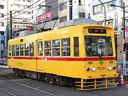 The Toei 7000 series (東京都交通局7000形) is a tramcar type formerly operated by Tokyo Metropolitan Bureau of Transportation (Toei) on the Toden Arakawa Line in Tokyo, Japan. The tramcars date from the 1950s, but were rebuilt in 1977 with new bodies.[1] The last remaining 7000 series tramcars were withdrawn following the final day of operations on 10 June 2017.