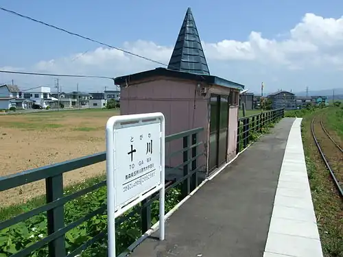Togawa Station (十川駅, Togawa-eki) is a railway station on the Tsugaru Railway Line in the city of Goshogawara, Aomori, Japan, operated by the private railway operator Tsugaru Railway Company.