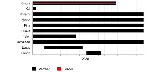 On January 4, 2020, Leyla Hirsch wrestled alongside Kimura and Kyona,[18] after which Hirsch would continue to wrestle with Tokyo Cyber Squad. On January 19 at Stardom 9th Anniversary Show, Konami and Kyona lost the Goddesses of Stardom Championship to Oedo Tai (Bea Priestley and Jamie Hayter).[19][20] On February 8, 2020 at Stardom The Way To Major League, Kimura, Kyona and Konami lost a number one contendership match for the Artist of Stardom Championship against Oedo Tai (Natsuko Tora, Natsu Sumire and Saki Kashima), and Death Yama-san and Leila Hirsch won a gauntlet tag team match by last eliminating the team of 3838 Tag (Saya Iida and Saya Kamitani).[21] On March 11, Hirsch left Japan to return home, meaning she could no longer participate as a member of Tokyo Cyber Squad.[22][23] On May 23, Kimura committed suicide.[24][25][26]