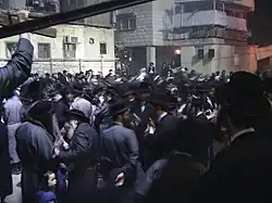 Toldos Aharon is a devout, insular, fervently anti-Zionist Hasidic group. The group is characterized by extreme conservatism and a desire to preserve the life of the old Yishuv in Jerusalem, in sharp opposition to Zionism, in a strict Haredi way of life, in a special style of clothing, and in an emphasis on prayer at a moderate pace and with enthusiasm. Headquartered in Jerusalem's Mea Shearim neighborhood, it also has significant numbers in Ramat Beit Shemesh, and New York City,[1] and additional members in Tiberias and in Harish.[2] The sect has about 1,800 households.[3] Toldos Aharon is a split-off from Shomer Emunim. It is led by its Rebbe, Dovid Kohn.
