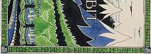 The Tolkien scholar Verlyn Flieger writes that Tolkien, seeking to present his Middle-earth writings as a credible mythology, needed to create a "credible book tradition". He went to "elaborate lengths" to achieve this, including many mentions of Bilbo's "diary" and "Translations from the Elvish", supposedly created during his years of retirement, complete with "the masses of notes and paper in his room at Rivendell".[3] She observes that the simulated tradition is already in evidence, hidden in plain sight, in The Hobbit, whose dust jacket is "surreptitiously" ornamented by Tolkien with ancient-looking runes, which read:[3]
