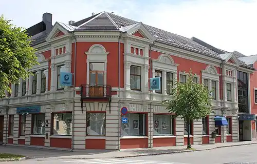 Kristiansand and Vest-Agder main police station and courthouse, and Kristiansand's largest high school Kvadraturen Skolesenter lies on the street. The Sandens Mall and multiple banks also reside along the street.[1]
