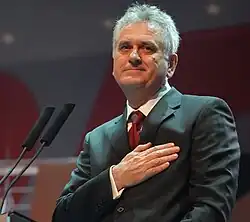 Tomislav Nikolić (Serbian Cyrillic: Томислав Николић, pronounced [tǒmislaʋ nǐkolit͡ɕ]; born 15 February 1952) is a Serbian former politician who served as the president of Serbia from 2012 to 2017. A former member of the far-right Serbian Radical Party (SRS), he disassociated himself from the party in 2008 and formed the Serbian Progressive Party (SNS) which he led until 2012.