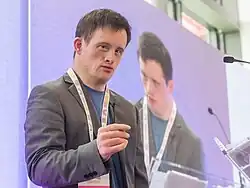 Tommy Jessop (born 19 January 1985) is a British actor, author and activist. He is the first actor with Down syndrome to star in a primetime BBC drama,[1] the first professional actor with Down syndrome to tour theatres as Hamlet, and the first to become a full voting member of BAFTA. In 2021, he was awarded an Honorary Doctor of the Arts by the University of Winchester. He is also an ambassador for Mencap and a patron of the National Down syndrome Policy Group.
