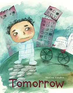 Tomorrow is a children's book written and illustrated by Syrian author Nadine Kaadan. It was originally published in 2012 by Box of Tales Publishing House (Arabic) and was later published in 2018 by Lantana Publishing (English). The story follows Yazan, a young boy living in Syria at the start of the Syrian civil war and the confusion and uncertainty of what is going on around him. Aware of the changes in his life, Yazan is frustrated and leaves his house without his parents knowing only to find the streets empty and filled with frightening sounds. He returns home and his mother explains that it is too dangerous outside, and he must not leave. Instead, they paint a park in his bedroom until he can go out again.