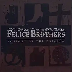 Tonight At The Arizona was released in 2007 by The Felice Brothers on English Label Loose.[1] The influence of Bob Dylan and The Band[2] is evident in many of their songs, such as "The Ballad of Lou the Welterweight", a roots revivalist folk ballad "...based on a story my grandpa used to tell us about" as James Felice put it. The imperfections in the recording of "Hey Hey Revolver" are supposedly from a lightning strike during the recording of the song. In 2008, the album was re-issued with three additional tracks: "Nowhere New York", "The Country Is Gone," and "Got What I Need" from their previous album, Through These Reins and Gone.