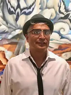 He received an Associate of Fine Arts degree from the Institute of American Indian Arts in Santa Fe in 1986, where he received the T.C. Cannon memorial scholarship and later, an honorary doctorate of humanities.[4] He earned a Bachelor of Fine Arts from the Maryland Institute College of Art in 1999 and a Master of Fine Arts from New York University in 2004.[5] Aside from his homes in New Mexico and California, he has worked and studied in Baltimore, New York, Chicago, Florence, Italy, Venice, Italy, and the South of France.[2]