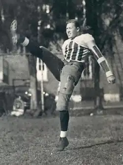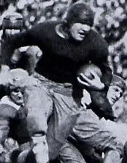 In 1929, Alabama began the season with three dominant wins but faced a challenging game against Tennessee, who had defeated the Crimson Tide the previous year. Alabama lost 6-0 in a close contest, with the game's outcome influenced by a blocked punt by Holm.[5] Despite a series of injuries to key players, Holm's strong performances helped the team defeat Kentucky and Georgia Tech later in the season. He finished the year with 1,387 rushing yards, earning All-Southern and All-American honors.[6]