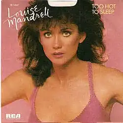 "Too Hot to Sleep" is a song written by R.C. Bannon and John Bettis, and recorded by American country music artist Louise Mandrell. It was released in July 1983 as the first single and title track from the album Too Hot to Sleep. The song reached number 10 on the Billboard Hot Country Singles & Tracks chart.[1]