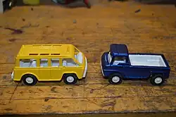 In 1961, Strombeck-Becker, later abbreviated to 'Strombecker' was a hobby company purchased by Dowst / Tootsietoy.[1] Strombecker had previously made popular plastic models mainly for slot-car racing — and continued to do so, but by the end of the 1960s the slot-car niche had largely run its course.[1] Later, plastic as well as die-cast toys were identified with both names as "Tootsietoy-Strombecker". The name Tootsietoy was often applied to larger, but fairly realistic plastic cars and trucks through the 1990s, but some die-cast were also still made like the Hardbody series in Matchbox size and slightly larger than 1:43 scale.