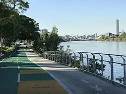 Toowong borders the Brisbane River. Along the riverside are a number of transport links: Coronation Drive, the Regatta ferry wharf, and the Bicentennial Bike Path (a bike and walkway) to the Brisbane CBD. This section of the river is the Toowong Reach.[7]