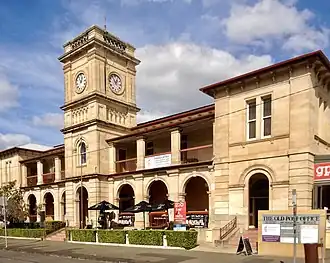 In 1852, Thomas Alford established the first store at Toowoomba.[24] Land for the town of Toowoomba at "The Swamp" was first surveyed in 1849, then again in 1853.[25]By 1858 Toowoomba was growing fast. It had a population of 700, three hotels and many stores. Land selling at £4 per acre (£10 per hectare) in 1850 was by then £150 per acre (£370 per hectare). Governor Bowen granted the wish of locals and a new municipality was proclaimed on 24 November 1860.