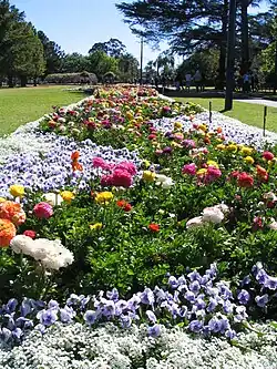 The rich volcanic soil in the region helps maintain the 159 public parks that are scattered across the city. Jacaranda, camphor laurel and plane trees line many of the city streets. The city's reputation as 'The Garden City' is highlighted during the Australian Carnival of Flowers festival held in September each year. Deciduous trees from around the world line many of the parks, giving a display of Spring colour.[15]