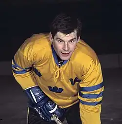 At 18, Lundström played his last season for Kiruna AIF before moving to Brynäs.[2] That same year, he made his national team debut in November 1963.[3] In his national team career, Lundström played in 200 games, including nine IIHF World Championships and the Olympic Games.[4] He competed as a member of the Sweden men's national ice hockey team at the 1968 and 1972 Winter Olympics.[5][6] Lundström then moved to North America where he joined the Detroit Red Wings of the National Hockey League (NHL) for the 1973–94 season. During that season, he became the second Swedish forward to score an NHL goal.[4] After injuring his shoulder, Lundström broke his contract and left the NHL to join the London Lions in England for the rest of the season. He subsequently returned to Brynäs IF for the 1974–1975 season.[2]