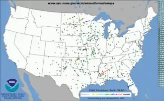 - ^ "Severe Weather Database Files (1950-2021)". Storm Prediction Center. National Oceanic and Atmospheric Administration. July 11, 2022. Retrieved November 12, 2022.
