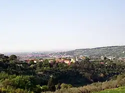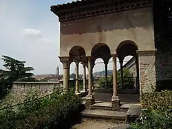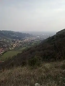 The Torricelle (Toresele in Veronese dialect) are the hills that surround the city of Verona to the north. The hills have been an integral part of the urban landscape since the founding of the city, whose first settlements in pre-Roman times saw the light of day on these very heights.[1] From an orographic point of view, the Torricelle are the extreme southern offshoot of the Lessini Mountains included between Valpolicella and Valpantena; they therefore belong to the sector of the Venetian Prealps. In addition to various places of worship, villas and private homes, part of the Veronese city walls of the Scaligeri era are developed on the Torricelle, and various military fortifications built during the Austrian domination can still be found, which have become today a characteristic element of the Veronese hill and city landscape.