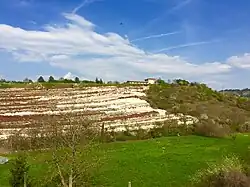 The valley area around Avesa has been affected in the past by intense mining of materials used in construction, such as Avesa Stone and Gallina Stone, the latter characterized by fossil deposits such as the better-known Veronese ammonitic red.[6] Quarries, now abandoned, can still be seen on the sides of the Ongarine and Arzan mountains.[7] The hills also yielded the so-called "yellow earth" of Verona, an ochre used for frescoes in the Renaissance period.[8]