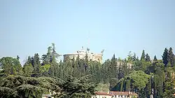 The hill, which encloses Valdonega to the east, is the natural continuation of the cordon that descends from Sommavalle and divides the city from Valpantena. It derives its name from the fortified citadel erected in Visconti times (between 1390 and 1409) at the northernmost point of the Scaligeri magistral wall. To build the fortress, the church of San Felice and the adjoining monastery, attested at this location since 938, were demolished, hence the name of the citadel and the hill. The castle was remodeled by the Austrians in the 19th century and now lies in a state of neglect.[37][38]