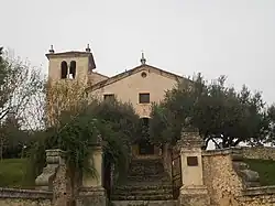 The hill that overlooks the suburbs of Ca' di Cozzi and Saval and encloses the Quinzano valley to the west is overlooked by the hermitage of San Rocchetto, a small Romanesque-style church reached by an 18th-century staircase. The hill was attributed a religious connotation even in pre-Christian times: in the Bronze Age there was a hillfort on its summit, a place from which perhaps the sun and stars were divined. In medieval times, its peculiar shape led people to liken it to Mount Calvario, from which the present toponym would derive, and to erect three crosses on the summit. Between the 12th and 13th centuries, pilgrims from the Holy Land carved out of the rock a small chapel called the Holy Sepulcher on which the present church was later built in the 15th century. At the foot of the hill, on the other hand, stands the church of St. Roch, also erected in the late 15th century.[17][18][19]