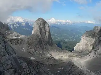 The Torsäule (2,588 m (AA)) is a very steep, about 500-metre-high limestone formation on the eastern flank of the Hochkönig massif in the Berchtesgaden Alps.