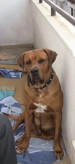 The Tosa[a], also known as the Japanese Mastiff,[3] is a dog breed of Japanese origin that is considered rare. It was originally bred in Tosa, Shikoku (present-day Kōchi), as a fighting dog and the only dog legally allowed in Japanese dog fighting.[4] Ownership is restricted in some countries as a dangerous breed.
