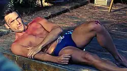 While delivering a package, a young postman Toto (Kylan James) discovers an injured man lying next to an inground pool and tends to his wounds. Mark (Kjord Davis) is in trouble with the mob and the two men decide to flee together. While resting on the side of the road, Toto gazes longingly at the handsome fugitive. He touches the sleeping man's hand and leans over to kiss him... and is surprised when the kiss is returned.[11]