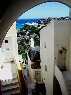 The growth of the tourism industry began in the early 1960s, when Porto Cervo[3] was founded by the Aga Khan in Costa Smeralda at the municipality of Arzachena,[4] which became the symbol of tourism development for the island. Architects such as Luigi Vietti, Michele Busiri Vici and Jacques Couelle contributed to the realization of the various developments. Porto Cervo was soon followed by Porto Rotondo,[5] Romazzino, Cala di Volpe and Porto Raphael. As Costa Smeralda[6] became more established among the international jet set, the race for the construction of tourist resorts began in many coastal towns on the island.