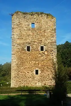 This plain tower seems to have been built shortly after 1199AD for a cadet branch of the family of the lords of Walhain.[3] In 1199, the abbess of Nivelles Berthe sold to Arnould Walhain a wasteland on which Arnould decided to build a large house that was the residence of several generations of Walhain.