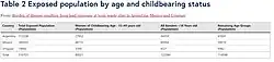 Of the exposed population, the proportion of women of childbearing age was relatively equal across the three countries.
