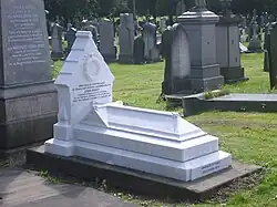 Grade II listed memorials include those of Sir John Bent,[3] Eleanora and Willam Gillespie,[4] Hetherington family,[5] Dr James Sheridan Muspratt,[6] Thomas Pennington,[7] Robert Rodgers,[8] Agnes and John Rowe [9] and Patience Simpson [10]